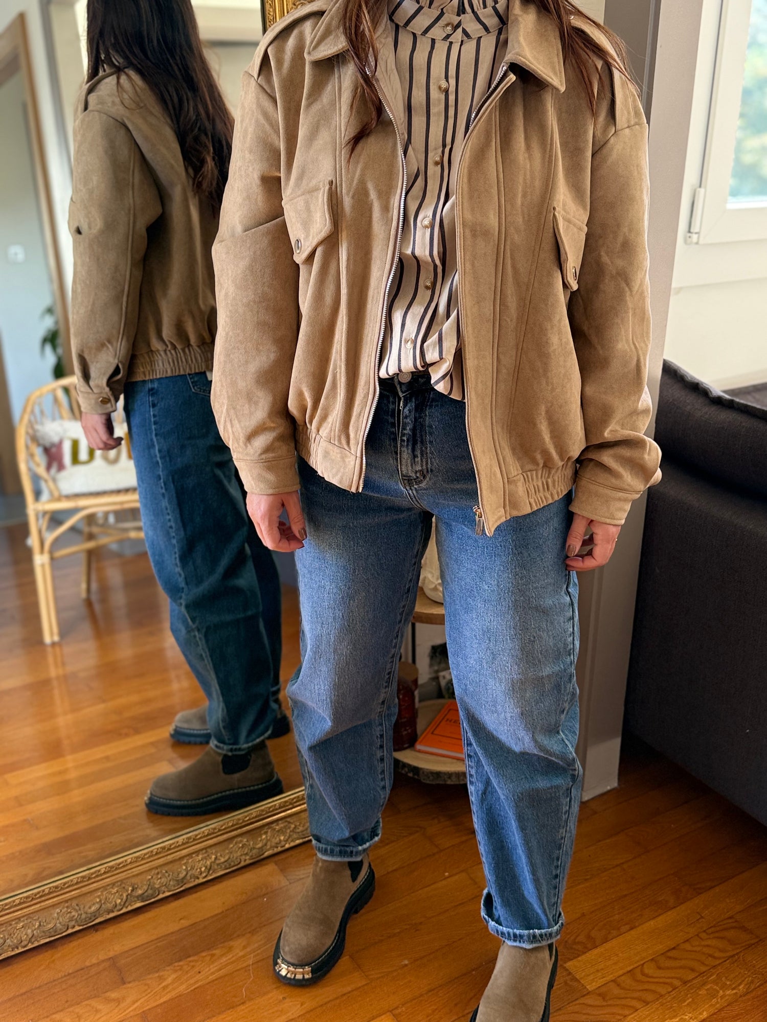 Veste blazer en suédine , de couleur beige,